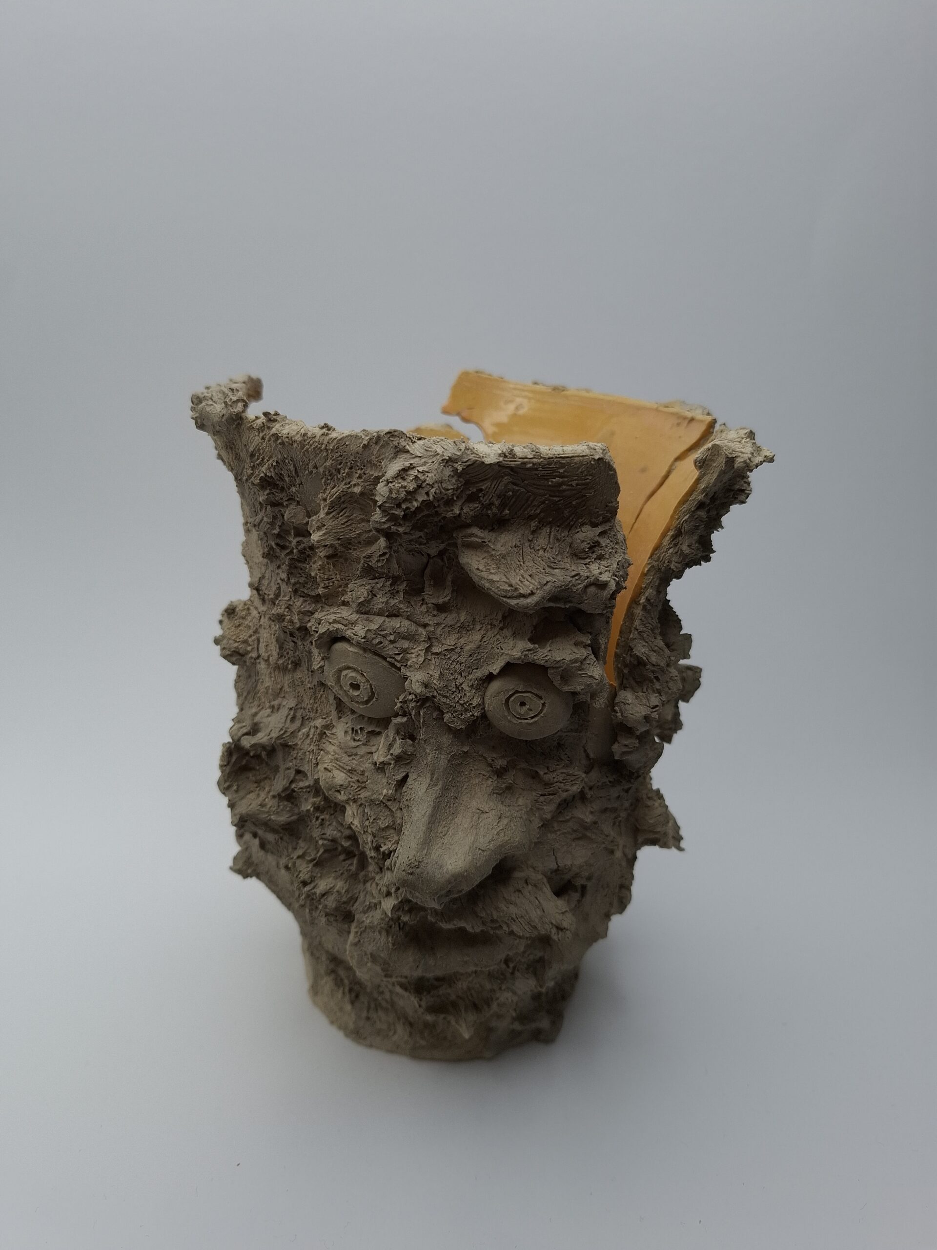 The sculptural form retains a raw, tactile surface, allowing traces of hand, pressure and material to remain visible, echoing the layered presence explored in the exhibition Many Voices (East Side Mall, Berlin).
