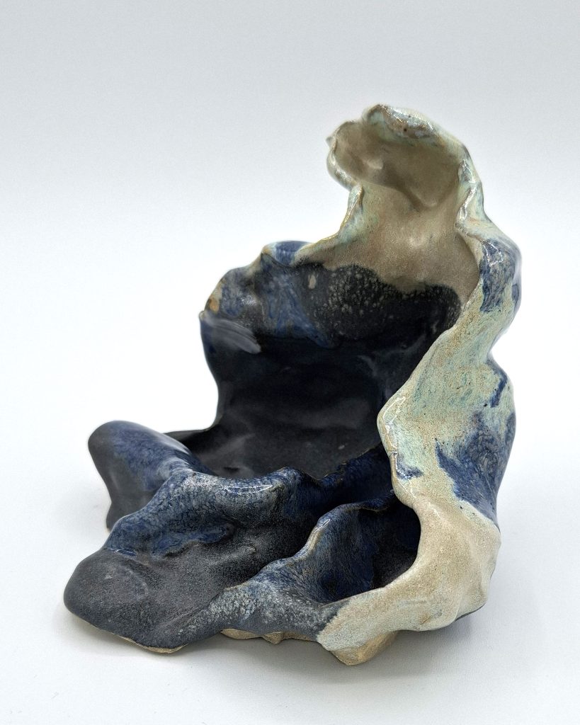 The practice moves between functional ceramics and sculptural, image-based work — shaped slowly by hand, material and attention.