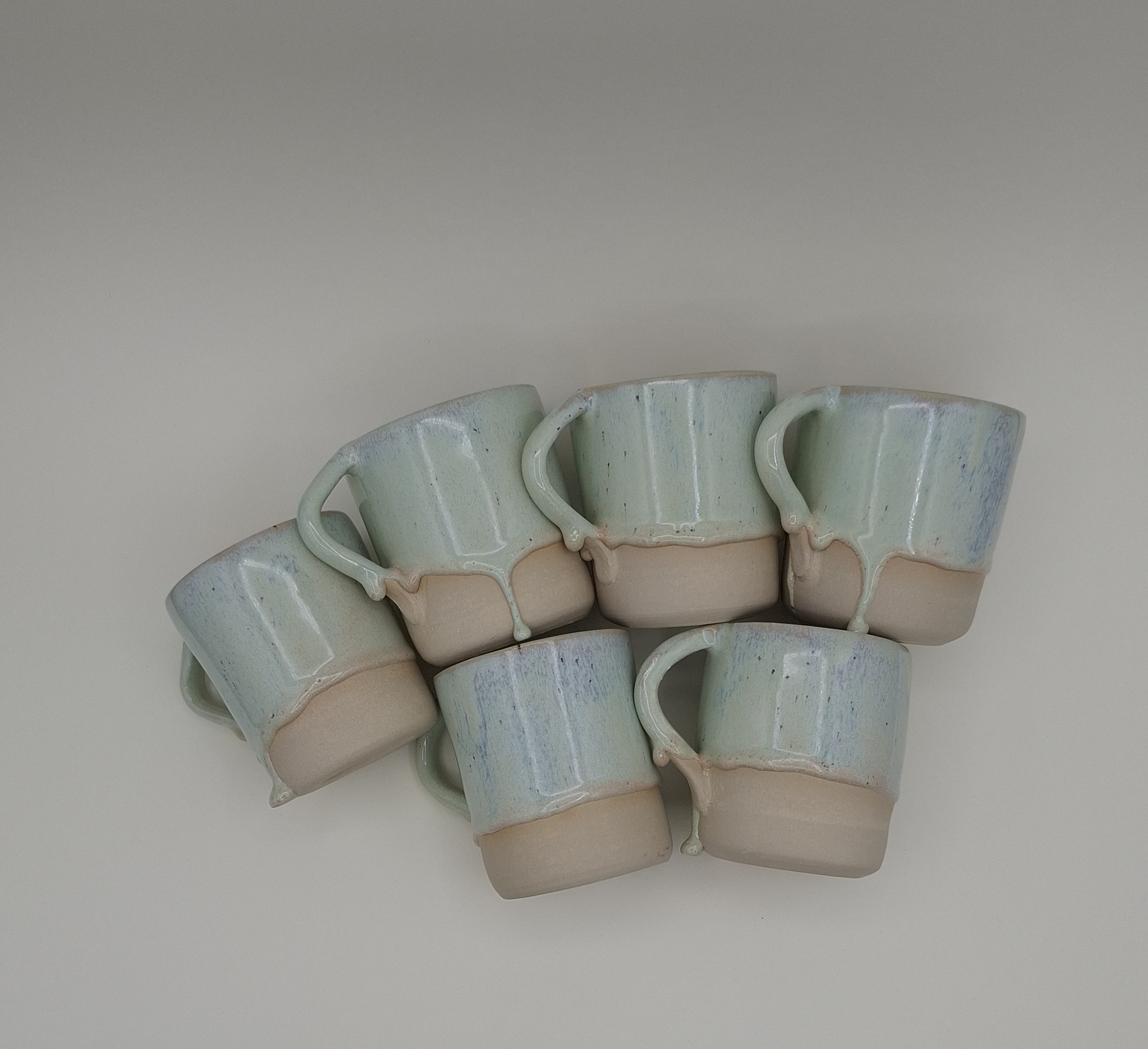 Soft Drip is a series of functional ceramic cups shaped slowly by hand, where restrained forms meet the fluid movement of glaze.